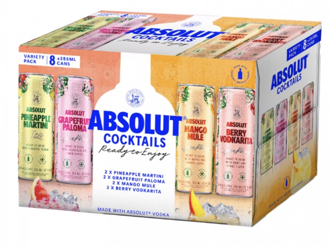 Made with Absolut Vodka, all natural flavors, real fruit juice and second to none mixology expertise. This 8-pack contains two cans of four delicious cocktail flavors ( 2 x Absolut Berry Vodkarita, 2 x Absolut Mango Mule, 2 x Grapefruit Paloma, 2 x Pineapple Martini).