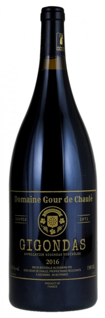 Several important vineyard sites form this Gigondas, including Gour de Chaulé, Les Blaches, and Les Bousquets. The Grenache vines average well over a half century in age, with low yields of 30-32 hl/ha. The grapes are never destemmed and there is a 3 week cuvaison with a small amount of press juice added back to the cuvée. The wine is racked into large oak “foudres” after malo where it stays for approximately 18 months, being bottled—unfined and unfiltered—three years after harvest. The resulting wine is sturdy, braced with sweet, dusty tannins, and is intensely aromatic with notes of crushed white pepper, oriental spices and game.