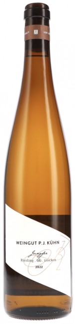 The 2021 Riesling Hallgartener Jungfer Grosses Gewächs was grown on mica schist mixed with quartzite. The nose has a touch of reductive int but then relaxes into lemons, green apples and creamy yeast. The palate is juicy, slender, concentrated and bouncy with yeast. It's serene, bright, absolutely honing on a central streak of ripe lemon and an intense, ocean-like umami note. There is a slight diusion with lactic notes, but the lemony brightness shines. Intense, long, slender, resonant with long-lasting lemon notions.